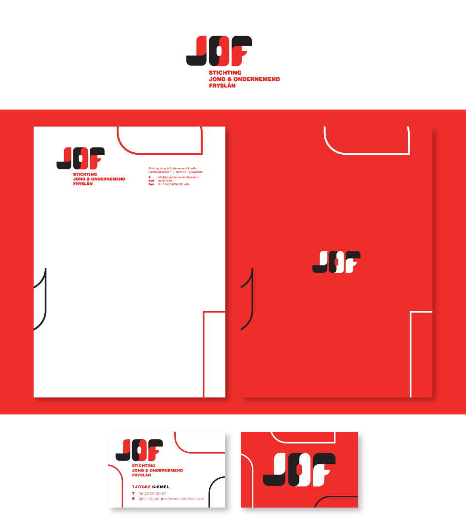Huisstijl Ontwerp JOF Posted on december 30, 2017 /Under Huisstijlen Huisstijl Ontwerp JOF Stichting Jong & Ondernemend Fryslân Logo Visitekaartje Briefpapier Posters Flyer